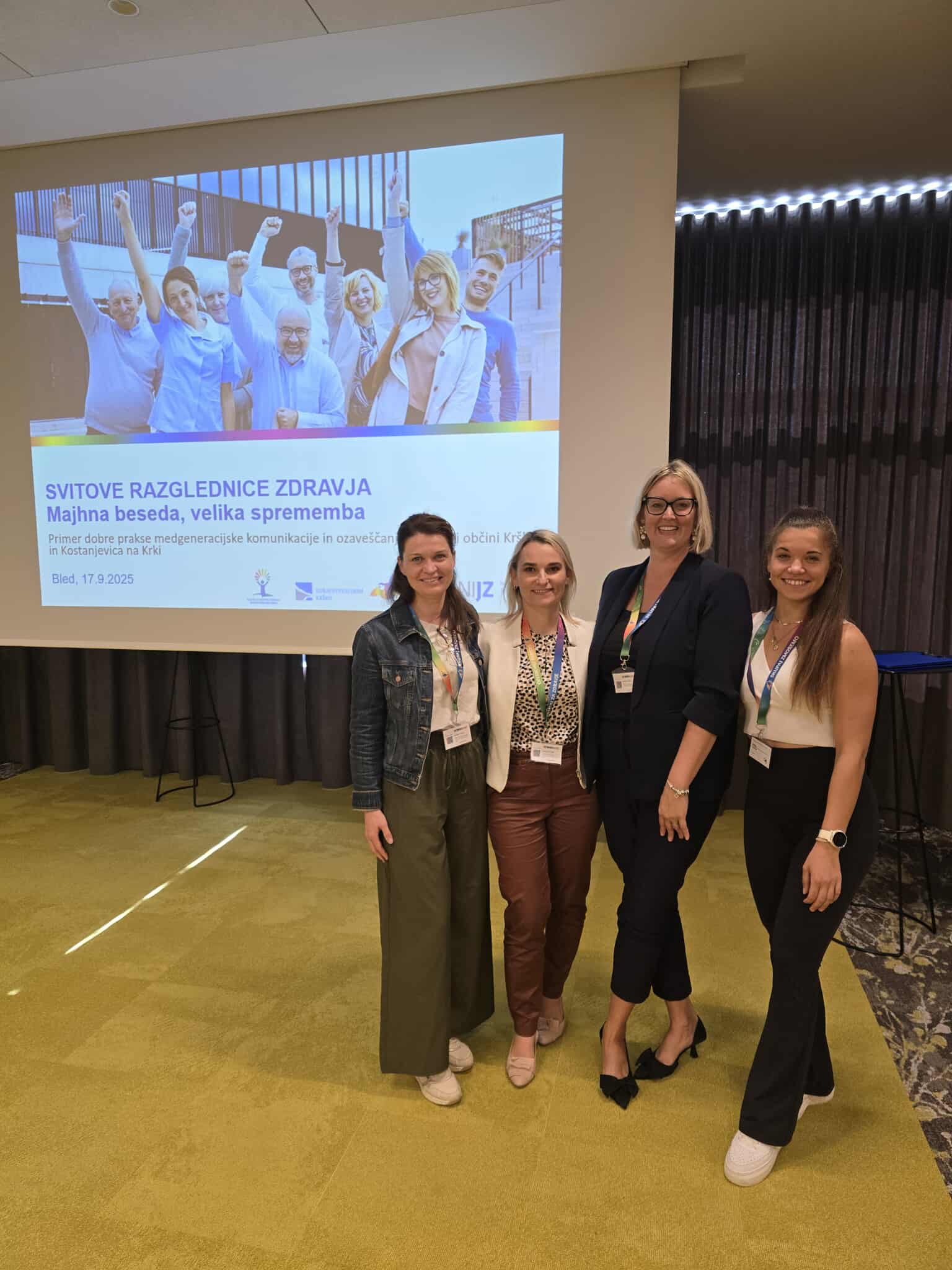 Na konferenci je s strokovnim prispevkom sodelovala tudi naša sodelavka Anja Šeško, dipl. m. s. s spec. znanji, iz Centra za krepitev zdravja ZD Krško. Predstavila je projekt »Svitove razglednice zdravja – majhna beseda, velika sprememba«, ki smo ga v Krškem razvili v sodelovanju z Mestno občino Krško, osnovnimi šolami ter lokalno skupnostjo.